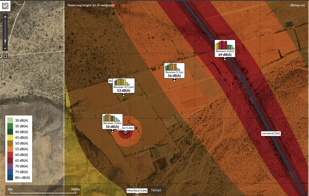 - Creamos mapas de ruido detallados que ilustran los niveles de sonido en áreas específicas, destacando las zonas críticas que requieren atención. Esta herramienta es invaluable para planificadores urbanos, arquitectos y desarrolladores, proporcionando datos clave para la mitigación del ruido.